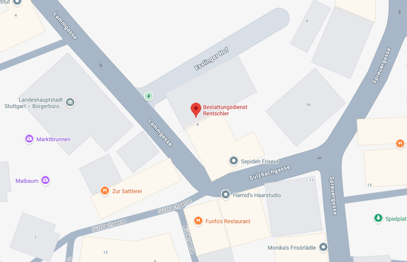 Unser Bestattungshaus liegt zentral im Herzen von Stuttgart-Bad Cannstatt, in der Nähe des Kurparks und der Wilhelma.